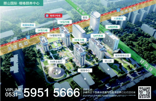 丽山国际·槿椿颐养中心是历下控股集团布局康养产业的开篇之作,项目位于奥体西路与花园东路交会处,毗邻中央商务区,占地约75亩,总建筑面积约22万平方米,涵盖660套舒适住房、配备约1万平方米槿椿学院、能同时容纳300余人同时用餐的养生餐厅、与山东中医药大学第二附属医院签约共建的康复医院等康养业态,通过102项适老化细节、88项秘书式服务,将为1300+齐鲁大地的长者提供“家文化+市区里”的拎包入住养老房源,为全济南的长者开启更美好的黄金岁月。