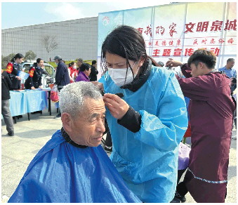 在爱心集市摊位区,血压测量、视力检测、免费理发、衣物缝补、磨剪子戗菜刀等“接地气”爱心服务项目,吸引了大量市民前来参与,醇熟精湛的技艺、便捷多样的服务、热情周到的态度,让前来参加活动的居民赞不绝口。区公安分局的女警宣传员采用“现场讲解+答疑交流”的方式,向广大市民介绍文明养犬、光盘行动、文明交通、文明上网等政策理念,她们手持文明宣传板与市民朋友合影留念、向他们发放宣传彩页,真正把各项政策理念融入人间烟火、送到群众心田。