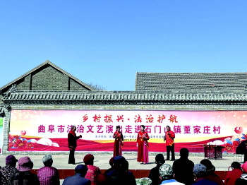 本报济宁3月28日讯(记者 丁安顺 通讯员 曹月华) 近日,在曲阜市石门山镇董家庄村,一台法治文艺演出正在上演。这是济宁市派第一书记工作队联合曲阜市司法局,到石门山镇董家庄村开展的“乡村振兴·法治护航”主题普法宣传活动。