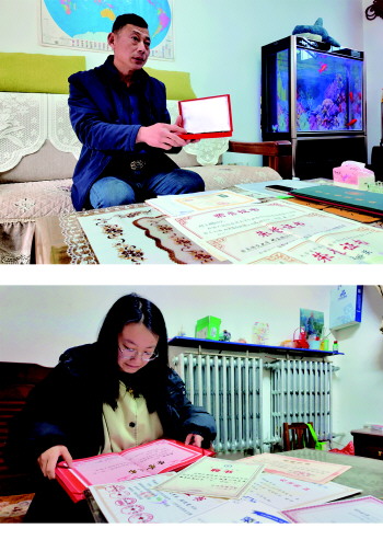 村里的博士爸爸展示孩子获得的荣誉。