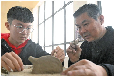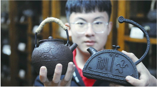 戚祖豪说,虽然他酷爱铁壶的设计,但现在即将中考,还是得暂时放下,专心读书。父亲戚平川从他对铁壶设计中关于内容、文化理念等诸元素相结合表现出的独到构想,看到传承的希望,决心以后要将制壶的各项传统工艺交给儿子。
