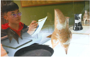每到一处博物馆,戚祖豪看到好的传统文化元素都临摹下来,积累资料。