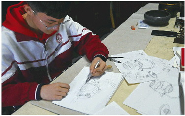 学习累了,戚祖豪就到工作室和泥巴放松。