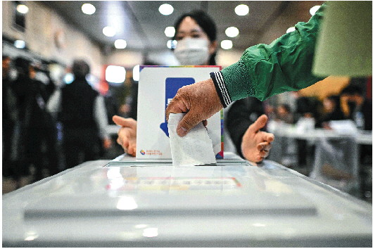4月10日,选民在韩国首尔一处投票站投票。 新华/法新