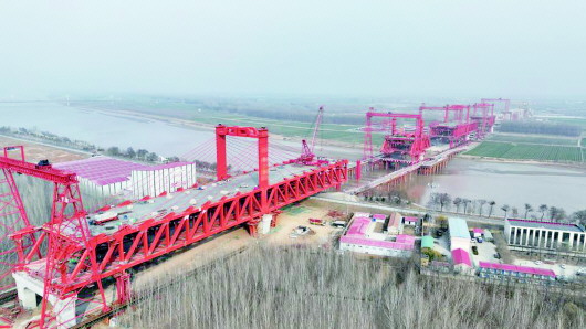 4月15日上午,随着重达近200吨主塔钢横梁精准提升到位,由山东铁投集团济滨高铁公司投资建设、中铁大桥局承建的济滨高铁(即津潍高铁济南联络线)济阳黄河公铁两用特大桥P39#墩主塔顺利封顶,标志着全桥4座钢主塔全部完成,为实现年内钢梁合龙贯通奠定坚实基础。