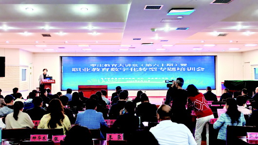 近日,枣庄教育大讲堂(第六十期)暨职业教育数字化转型专题培训会在枣庄理工学校举行。会议邀请中国教育科学研究院职业教育与继续教育研究所副研究员、博士聂伟,机械工业出版社数字资源创作中心副主任、副编审齐志刚作培训,市教育科学研究院副院长兼职教室主任张颖梅主持。