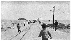 20世纪20年代某天下午的栈桥。近处两名儿童跑上栈桥,奔向海边。 (展出老照片)