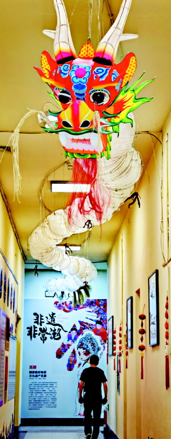 ▲ 博兴文化馆展出的用市级非遗项目店子粉皮创作的文创“粉皮龙”活龙活现。