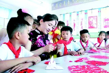 特色剪纸,让校园“美”起来——剪出手指尖上的智慧。“一刀变四刀,一刀变娃娃。一刀一个缝,两刀相碰变弧线。一刀一个缝,两刀相碰变直线。”滨州市非物质文化剪纸传承人方秀岭老师如是说着。一个神奇的“福”字在浅显易懂的口诀中魔法呈现处理,手指尖上呈现出一个个艺术品。一张彩纸、一把剪刀,在西小王镇中心小学师生的手上,就能变幻成一件件精美绝伦的剪纸艺术作品。不管是剪出来的美丽窗花、折出来的裙子、还是刻出来的中国龙……无不惟妙惟肖,充分展示了孩子们丰富的想象力和创造力。