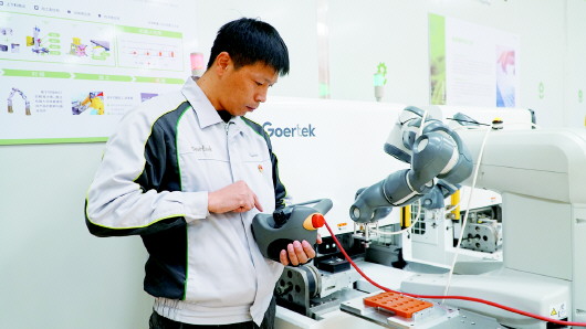 王新福,歌尔股份有限公司设备装调技师。20多年来,他深耕一线、刻苦钻研,从一名普通技能钳工,逐步成长为新产业赛道的领军工匠和专家型技能人才。