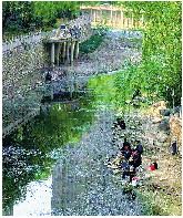 一些济南市民假期在兴济河边垂钓。 张琪 摄
