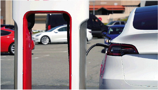 这是4月2日在美国加利福尼亚州圣布鲁诺一处停车场拍摄的电动汽车。 新华社发