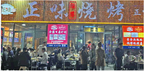 “今年客人来得比去年还要早。”尽管做好了充足准备,但新一波流量还是超出了刘静的预期。她告诉记者,整个五一假期,正味烧烤水晶街店上午十点左右开张,到晚上十二点仍旧持续爆满,每天消耗肉量达七八百斤。