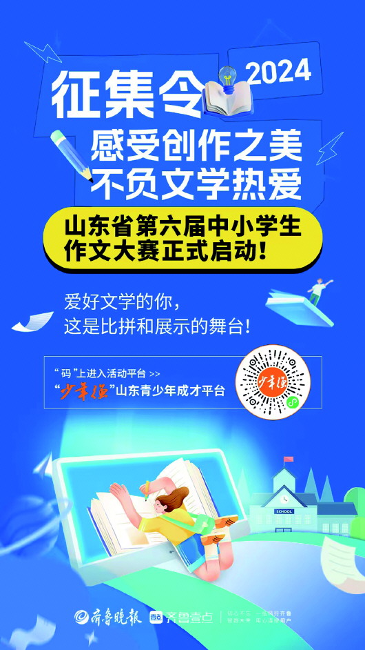感受创作之美,不负文学热爱。4月28日,山东省第六届中小学生作文大赛正式启动。本届大赛由山东省青年作家协会、山东省散文学会、山东省写作学会联合指导,齐鲁晚报·齐鲁壹点主办。