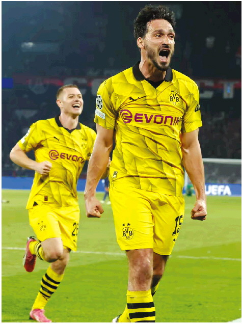 胡梅尔斯(前)头球制胜,多特蒙德11年后重返欧冠决赛。 新华社发