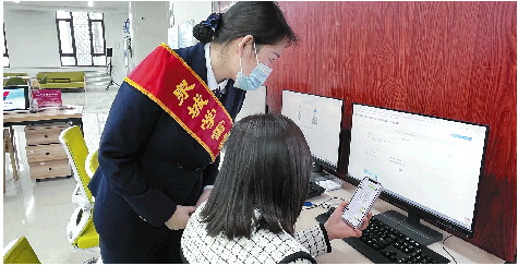 帮办工作人员主动靠前服务,协助办事群众进行网上业务申报。