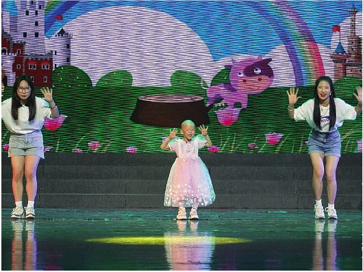 登上舞台的小米乐(中)表演时很开心。