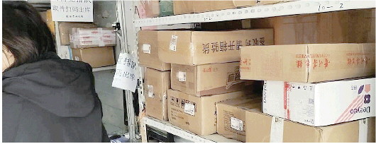沙河镇一位村民来到一家快递网点取快递包裹。 钟建军 摄