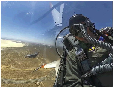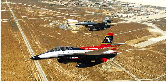 美国航空网站The Aviationist刊发的照片显示,AI战机“维斯塔”(前)与飞行员驾驶的战机展开模拟空战演练。