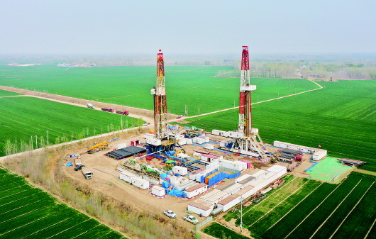 近日,在胜利油田鲁明公司商541区块钻井现场,3台钻机同时钻进施工,全面推进新区产能建设项目。据了解,商541区块设计油水井30口,新建产能4.94万吨,已完钻井中22口井,打破中石化相应井深钻井周期纪录。