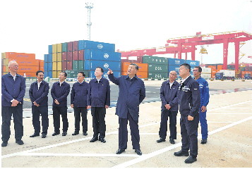22日下午,习近平在日照港察看全自动化集装箱码头作业场景。 新华社发