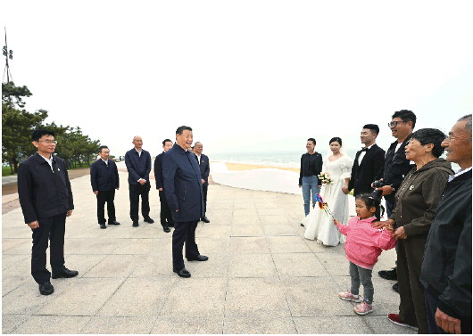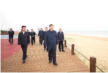 22日下午,习近平在日照市阳光海岸绿道考察。 新华社发