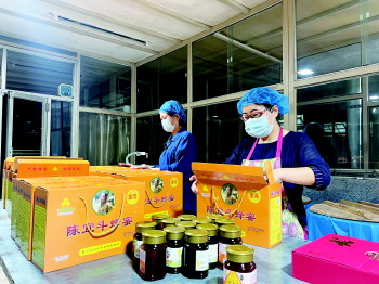 工人正在包装蜂蜜。