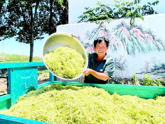 “我们村的金银花产业基地种植面积约340亩,每亩可采摘鲜花350-400斤。采摘期,每天需要100余人进行采摘,按斤计算工资,这些金银花不仅给村民们带来了‘真金白银’,也让村集体经济迎来了新发展,大家越摘越有兴趣。我们都是当天采摘,当天烘干,这样既保留了金银花的药性,又可保持它的颜色品质,提高经济价值。合作社和我县舜王城中药材市场以及临沂、亳州等地的大型中药材市场都有长期合作,实现金银花采集、烘干、销售一条龙。”大周寺党支部书记任文革介绍。