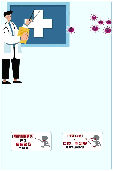 ▲疱疹性咽峡炎与手足口病的主要区别
