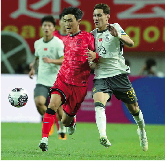 虽不敌韩国队,但拜合拉木(右)等年轻球员表现亮眼。 新华社发