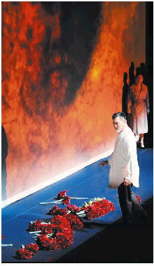《鳄鱼》中没有直白讲道理的说教,而是让观众主观感受人物性格,体验情感进入剧情中,同时又让观众保持着客观与理性,全程清晰地看到人堕落的原因与脉络。结尾,“单”的儿子小涛死亡的戏份让不少观众痛心落泪,一切对剧中悲剧性人物的同情,全部在激昂的音乐中转化成警醒。凯丽最后的那句“请听我庄严宣判”,仿佛是现场每一位观众的心声。至此,话剧《鳄鱼》实现了莫言文本中强烈的警醒与自我观照——人不能被欲望吞噬。