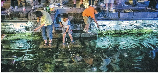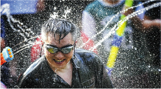 盛夏的济南五龙潭公园,打水仗寻清凉。 戚勇 摄