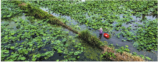 济南红岭村,幽静的夏日池塘。 朱明 摄