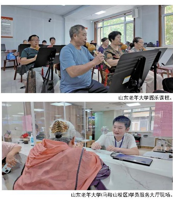 “退休前在单位工作比较忙,很多东西想学但没有时间。退休后来到老年大学,很多曾经的遗憾得到了弥补,年轻时的梦想也实现了。”在山东老年大学(马鞍山校区)的学员服务大厅,年近七旬的谢吉华老人热情地为咨询报名的老年人介绍老年大学的课程与报名方法,并以身说法介绍自己的收获。