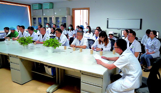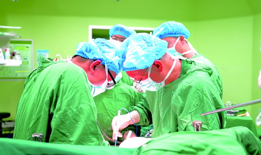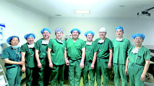 侯建青(右二)带领团队手术。