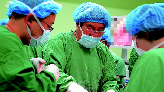杨牟(中)带领团队手术。