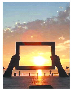 之前为了看日出,我曾特意带着女儿爬到泰山顶上,不巧赶上阴天,穿着棉大衣站在山顶哆嗦了半天,也没能看见日出。来威海以后,只要在对的时间、对的天气来到海边,甚至是站在自家的玻璃窗前,都能看到日出。这是大自然赐给人类的福利,也是海边人的福气。