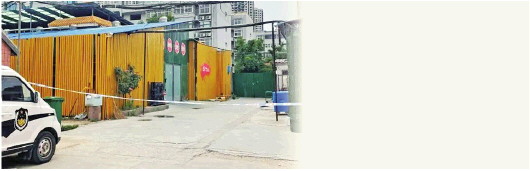 记者在违规冷藏车所属企业的厂区看到,门口拉着警戒线。 图源澎湃新闻