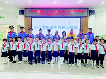 近日,青岛交警市北大队人民路中队联合信新相映公益平台、青岛城运控股公交集团隧道巴士第八分公司“青岛巴士”志愿团队等单位一同走进青岛人民路第一小学举行交通安全公益活动。交警通过生动的案例,为同学们讲解了安全过马路的注意事项。公交志愿者们详细讲解了乘坐公交的注意事项,从排队上车到应对紧急情况,让孩子们做到安全乘车。