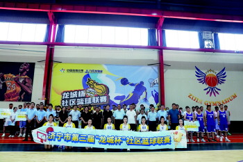 开幕式最后,济宁市体育总会(老体协)服务中心主任赵相宏高声宣布:“济宁市第三届‘龙城杯’社区篮球联赛开幕!”