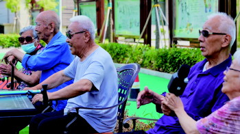 “孙爷爷90岁高龄了,听力不太好,刚来的时候不愿意参加活动,现在每天都主动要求出来活动,享受和大家在一起的时光。”侯桂萍介绍,还有一位94岁的张奶奶,喜欢晒太阳。此时,张奶奶正半靠在躺椅上,戴着墨镜,关注着唱歌的老人,用手打着节拍。此时她的儿子,70岁的徐文东正在一旁伴奏,“我就住在弘儒佳苑小区,这里离家非常近,我每天都能来看看母亲。”徐文东表示,他擅长口琴、葫芦丝等多种乐器演奏,以后他还打算教老人们跳交谊舞。
