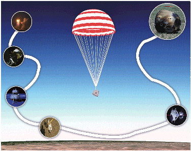 当下降至预定高度后,返回器在大约印度洋上空向上跳出大气层,到达最高点后开始滑行下降。之后,返回器再次进入大气层,实施二次气动减速。