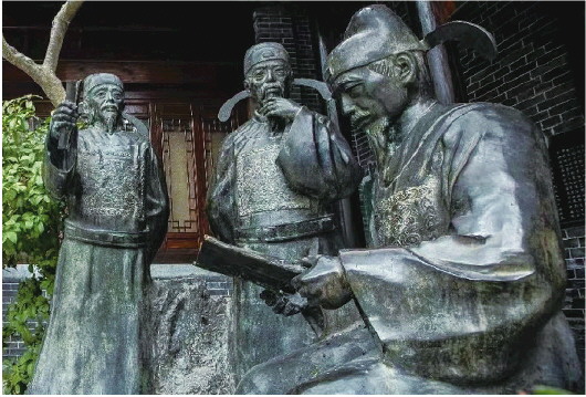 台儿庄古城运河奏疏馆内的“泇河三公”塑像。