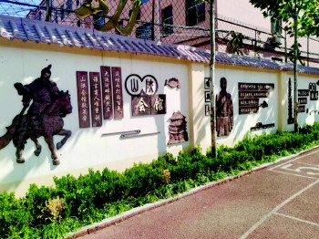 学校文化长廊采用浮雕设计介绍家乡聊城的版图和历史,用写意画和诗句介绍了光岳楼、东昌湖等家乡的名胜古迹,用塑像和诗文介绍了孔繁森、张自忠、武训等家乡名人。这些浮雕画面优美、通俗易懂、形象生动,集观赏性、知识性、趣味性为一体,使生机勃勃的校园充满了文化艺术氛围。