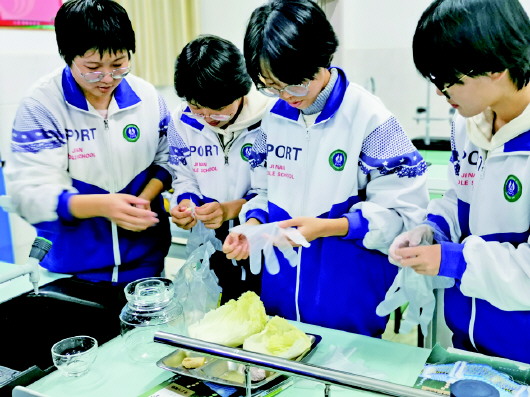 端午包粽子,冬至包饺子,这是济南中学过节的仪式感,也是依托传统文化节日开展教育的生动案例。配合学科融合教育,学校开设了“跟着节气去劳动”“生物发酵技术”“探秘榫卯结构”等多门课程,让同学们在实践中学习。此外,学校还会组织运动会、艺术节、校园吉尼斯、读书分享会等大型活动,为同学们提供了尽情展现才华的舞台,每一个人都有机会化身明星,熠熠闪耀。