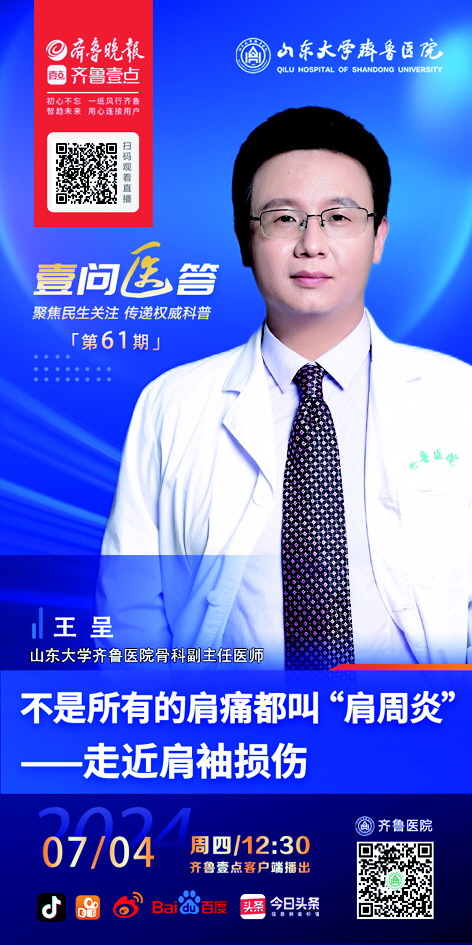 相比肩痛后及时到医院检查,更多的人会选择硬扛或者到按摩店推拿按摩,还有人会选择大幅甩肩来恢复肩关节的灵动。其实,这些做法都存在着一定程度的误区。7月4日12点30分,山东大学齐鲁医院骨科副主任医师王呈做客“壹问医答”直播间,就肩袖损伤的康复治疗与常见误区等内容进行科普,敬请关注。