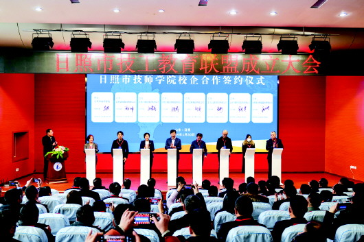 日照市技工教育联盟由日照市人社局指导,日照市技师学院牵头,联合日照市69家企业、10所职业学校组建而成。联盟紧密对接日照市十二条重点产业链,统筹利用联盟内各院校和企业资源,推动“院校群”与“企业群”密切合作、“专业链”与“产业链”深度融合,发挥各院校优势特色,有效解决专业设置同质化问题,实现以强带弱、错位发展,更好配置职业教育资源,构建了校企共育、产教融合发展新模式,精准培养适应区域产业发展和企业转型升级所需的高技能人才。