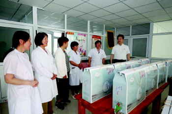 捐赠的是温暖,传递的是爱心。活动现场,医院党委副书记刘宗廷和王莹莹等支部党员共同将夏凉被、纪念品等送到养心苑日间照料中心的负责人和老年人的手中。他们与养老院的老人们拉家常,话亲情,仔细询问他们的生活、身体情况、关心了解他们的实际需求。随行的医护人员还为老人们开展血压测量和心肺听诊等常规检查,并对老年人的用药、保健、饮食等方面给予健康指导。