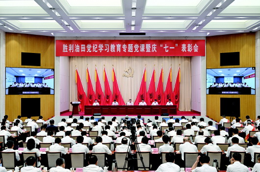 油田党纪学习教育专题党课暨庆“七一”表彰会召开。 通讯员 朱克民 摄