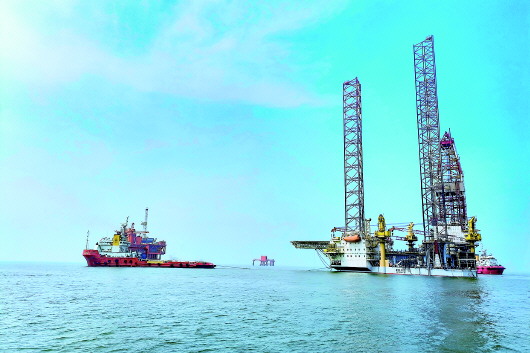 6月30日,胜利五号钻井平台顺利就位埕北4EB井组即将开始钻井作业。海上是中国石化胜利油田原油产量重要增长点,今年以来,胜利油田加快推进海上新建产能和老区治理进度,上半年,胜利海上新钻完井16口,油水井作业完井84口,为确保完成全年产量任务目标打下坚实基础。